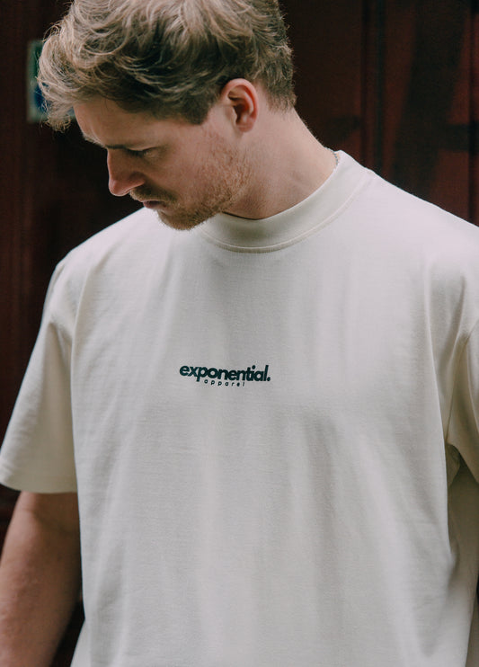 Our Core Logo Tee in jet black. Delivering simplicity with substance. Made from heavyweight 250gsm cotton, this oversized tee has a relaxed fit with a strong silhouette. The chunky, soft neckline gives it a standout look while ensuring all-day comfort.Featuring a bold screen-printed Exponential logo on the chest, this tee embodies drive, hard work, and progression—perfect for those building their path to success.